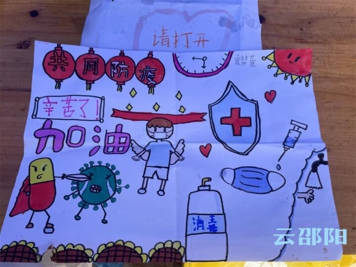 23日,我和隊員們在邵水橋社區輕紡市場(魏源市場)采集核酸標本時,發生了暖心的一幕,一位名叫夏夢萱的小朋友在排隊準備核酸檢測時,將自己畫的“大白”送給了我們的工作人員。