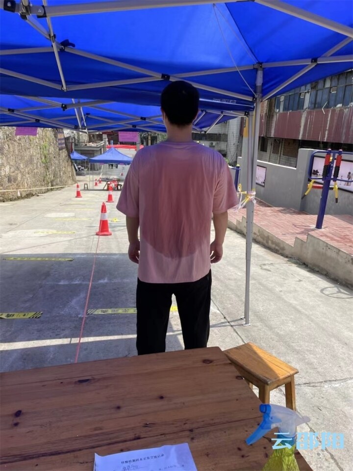 20日凌晨5時左右,小區里來做核酸檢測的業主們又開始慢慢增多了,顧不上休息,我馬上又投入到緊張地工作中。因為是第一次全員核酸,在人力上還是有些吃力。考慮到其他兩名是女隊員,我建議她們先輪換休息,當天我們一直工作到中午12時才回酒店。期間,我和隊員們顧不上吃早餐,連喝水的時間都沒有。