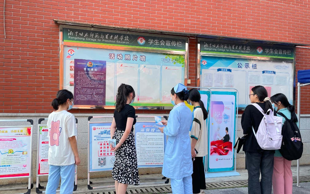 湘中幼兒高等專科學校圖書館前坪,采血車旁依序站滿了等待獻血的學生,邵陽市中心血站工作人員和學校志愿者按照疫情防控要求,有序地做好引導、征詢、填表、測血壓、化驗、采血等工作。有些同學是第一次獻血,工作人員耐心地向他們介紹有關獻血前后的注意事項。學生們紛紛表示無償獻血是一種愛心和奉獻的體現,更是青年學子的責任與擔當,希望獻出的血液能夠幫助他人,也期待有更多的人參與無償獻血。