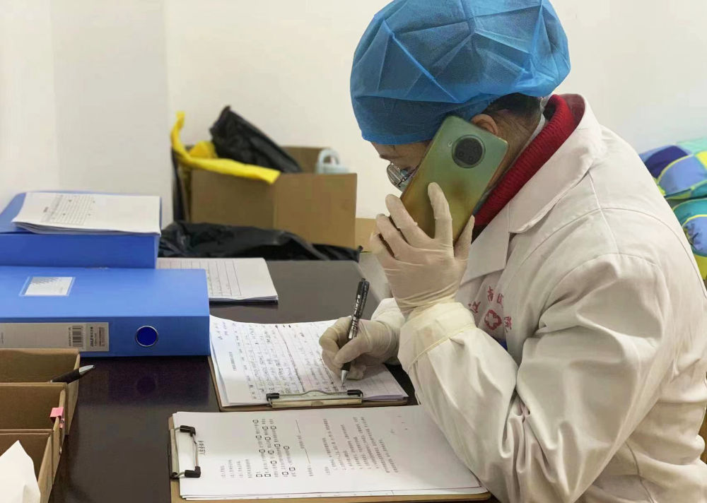 12月28日,在湘潭市雨湖區江南銳意康復中心,醫護人員正在進行信息登記。(受訪者供圖)
