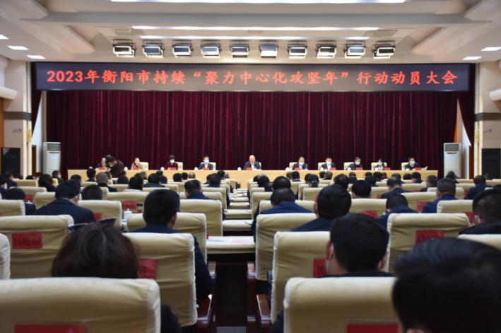 ▲ 2023年衡陽市持續(xù)“聚力中心化攻堅年”行動動員大會現場。(王敏 攝)