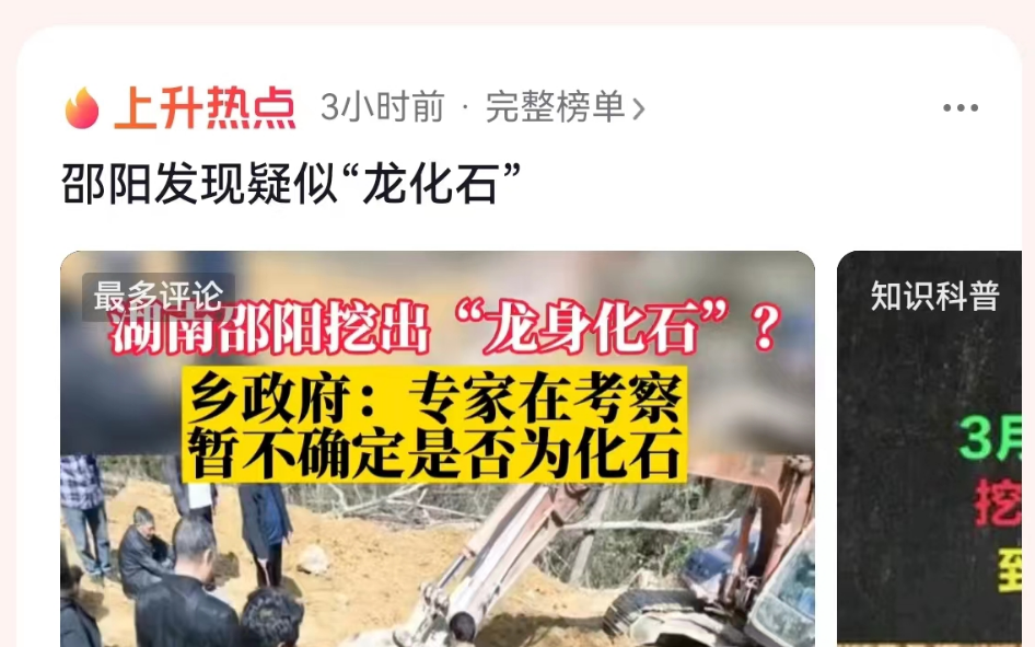 邵陽新聞網3月15日訊(記者 劉廣 張敏)3月14日晚,湖南武岡挖出“龍身化石”的短視頻引爆網絡,隨后“邵陽武岡挖出‘龍爪’巨石”“邵陽發現疑似‘龍化石’”等相關話題沖上熱搜。