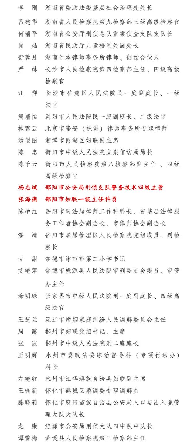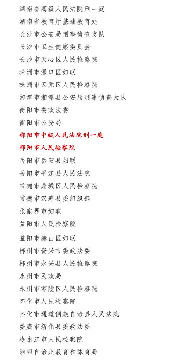 近日,《全國婦聯關于表彰全國維護婦女兒童權益先進集體和先進個人的決定》印發,全國800個集體、800名個人受到全國婦聯表彰。湖南省高級人民法院刑一庭等28個單位榮獲全國維護婦女兒童權益先進集體稱號,李剛等28名同志榮獲全國維護婦女兒童權益先進個人稱號。