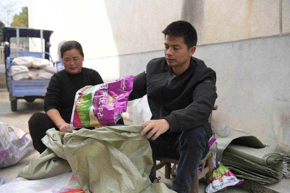 3月21日,在鼎城區(qū)謝家鋪鎮(zhèn),戴宏(右)在做浸種前的準(zhǔn)備工作。(陳歡 攝)