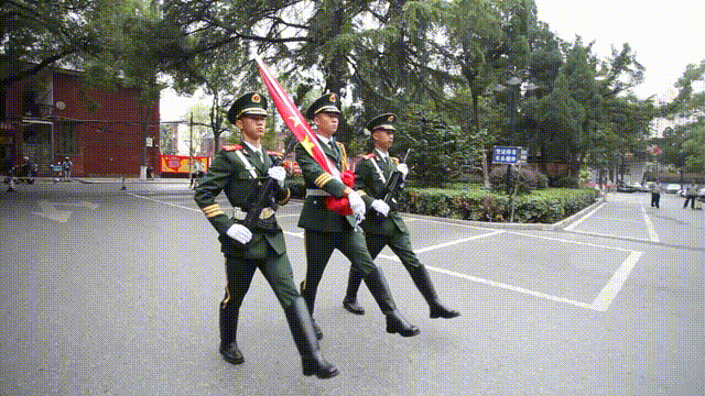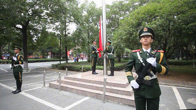 上午9時(shí)許,伴隨著豪邁的樂(lè)曲,國(guó)旗護(hù)衛(wèi)隊(duì)士兵昂首闊步,護(hù)衛(wèi)著五星紅旗來(lái)到市委機(jī)關(guān)大院的旗桿下。升旗手振臂一揮,鮮艷的五星紅旗迎風(fēng)展開(kāi),全體人員肅然而立,向五星紅旗行注目禮,齊聲合唱國(guó)歌,目送五星紅旗冉冉升起。