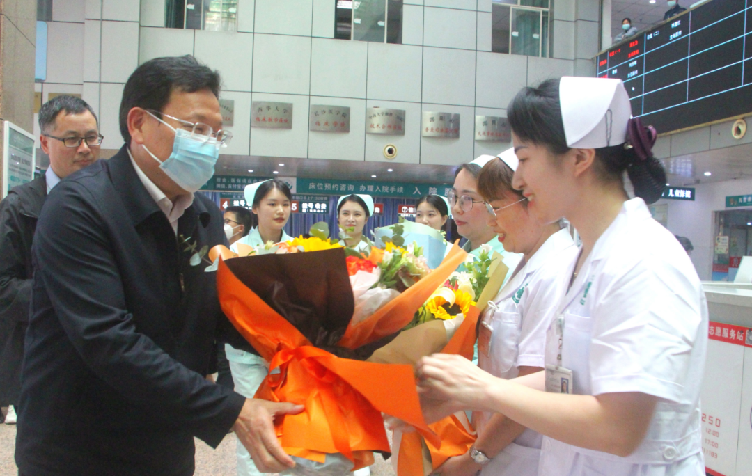 當天下午,華學健先后到市中醫醫院、邵陽學院附屬第一醫院看望慰問黃琛、謝俞義、曾小忠、李琳、劉行等救護一線的優秀護士代表。華學健說,要全力打造良好的醫療事業發展環境,聚焦強基礎、強業務、提效能等工作重點,切實強化醫療基礎設施建設,優化群眾就醫流程,持續改善行醫環境,大力提升醫療救治能力,不斷增強人民群眾的獲得感、幸福感和安全感。市政府秘書長陳秋良參加。當天上午,市人大常委會黨組副書記、副主任唐淵先后到邵陽學院附屬第二醫院和市中西醫結合醫院看望慰問鐘春花、何雅、鐘云珍、呂金花等護理人員,為她們送上節日的慰問和美好的祝愿,叮囑醫院負責人要更加關心關愛護理工作者。